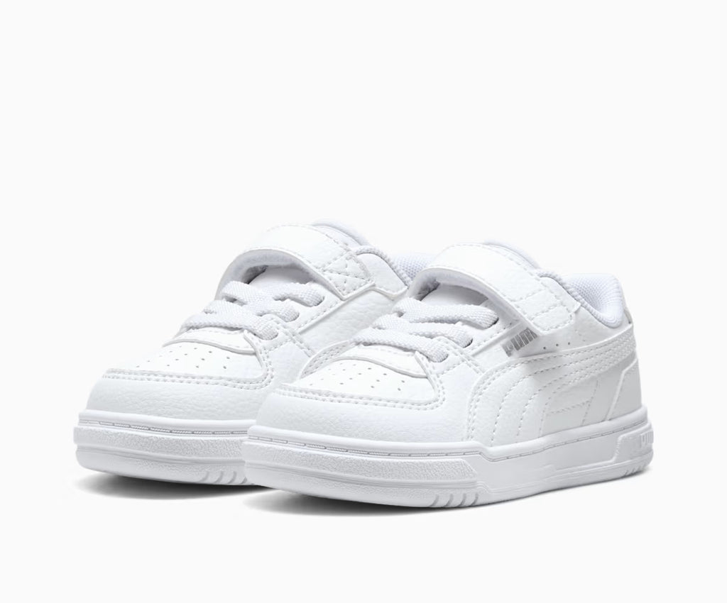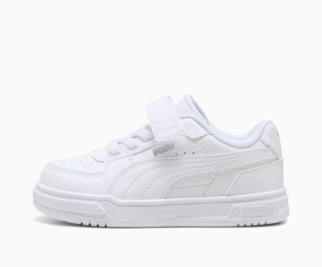 La Puma Caven III Bianco è progettata con attenzione ai dettagli tecnici che contano. Presenta una larghezza regolare e una punta arrotondata per un fit naturale e confortevole sui piedi in crescita. Il sistema di chiusura combina elastici e strappo, permettendo un'allacciatura rapida e sicura ideale per i bambini. Con tacco piatto e la firma PUMA ben visibile, questa sneaker unisce funzionalità sportiva e riconoscibilità del brand in un'unica soluzione versatile.