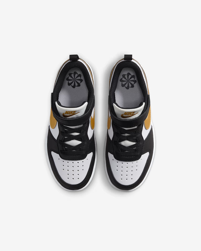 Nike Court Borough Nero Bianco Oro Scarpe Bambino Sportive Sneakers DV5457 008