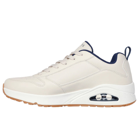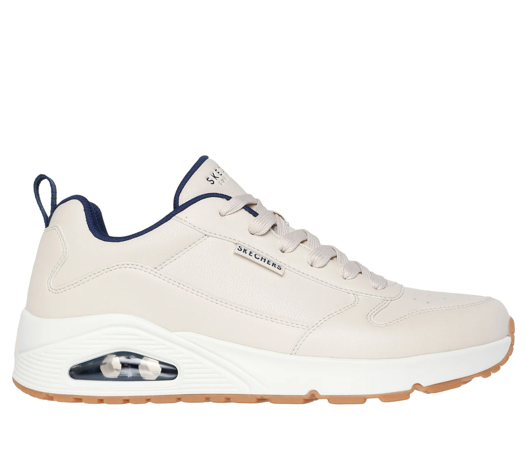 Gli Skechers Uno Alder Beige incarnano la fusione perfetta tra eleganza sportiva e prestazioni tecniche. Questa sneaker da uomo vanta una tomaia in duraleather resistente e una costruzione allacciata che assicura una vestibilità stabile e personalizzabile. L'esclusiva soletta in Memory Foam® raffreddata ad aria mantiene i piedi freschi e supportati, mentre l'intersuola con tecnologia Skech-Air® visibile fornisce ammortizzazione reattiva e leggerezza. Progettate per chi non scende a compromessi tra stile contemporaneo e comfort funzionale, queste sneaker si adattano perfettamente all'uso quotidiano e alle attività sportive casual.